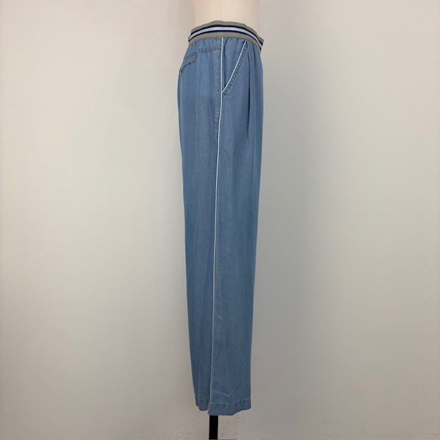 テンセルデニムで柔らか素材。通気性あり。ウエストゴム仕様。