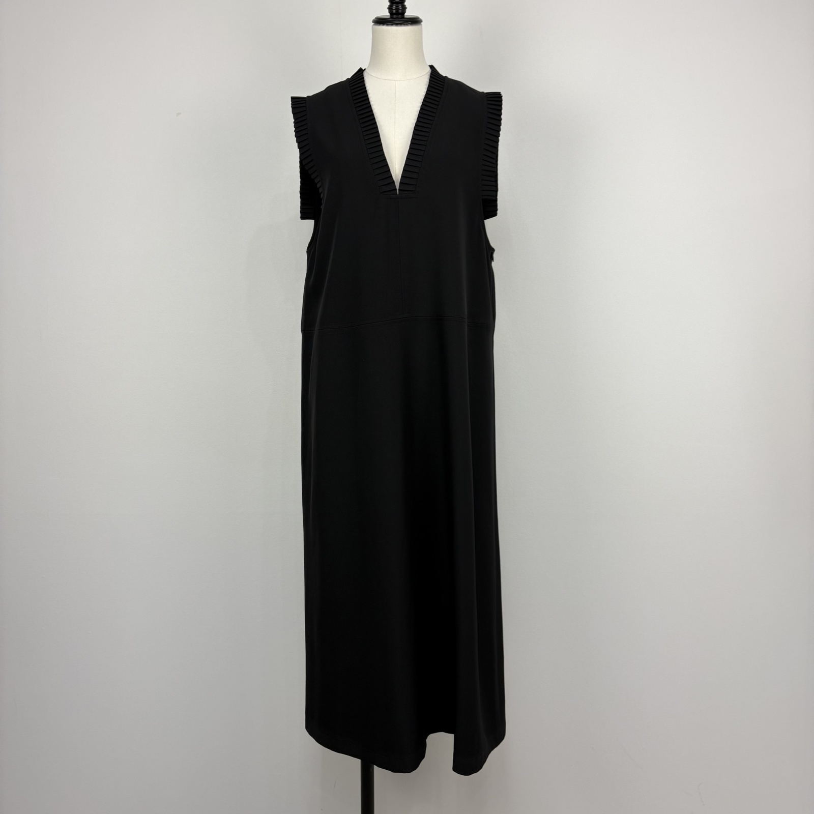 深Vネックのロングワンピース。ゆったりシルエット。
