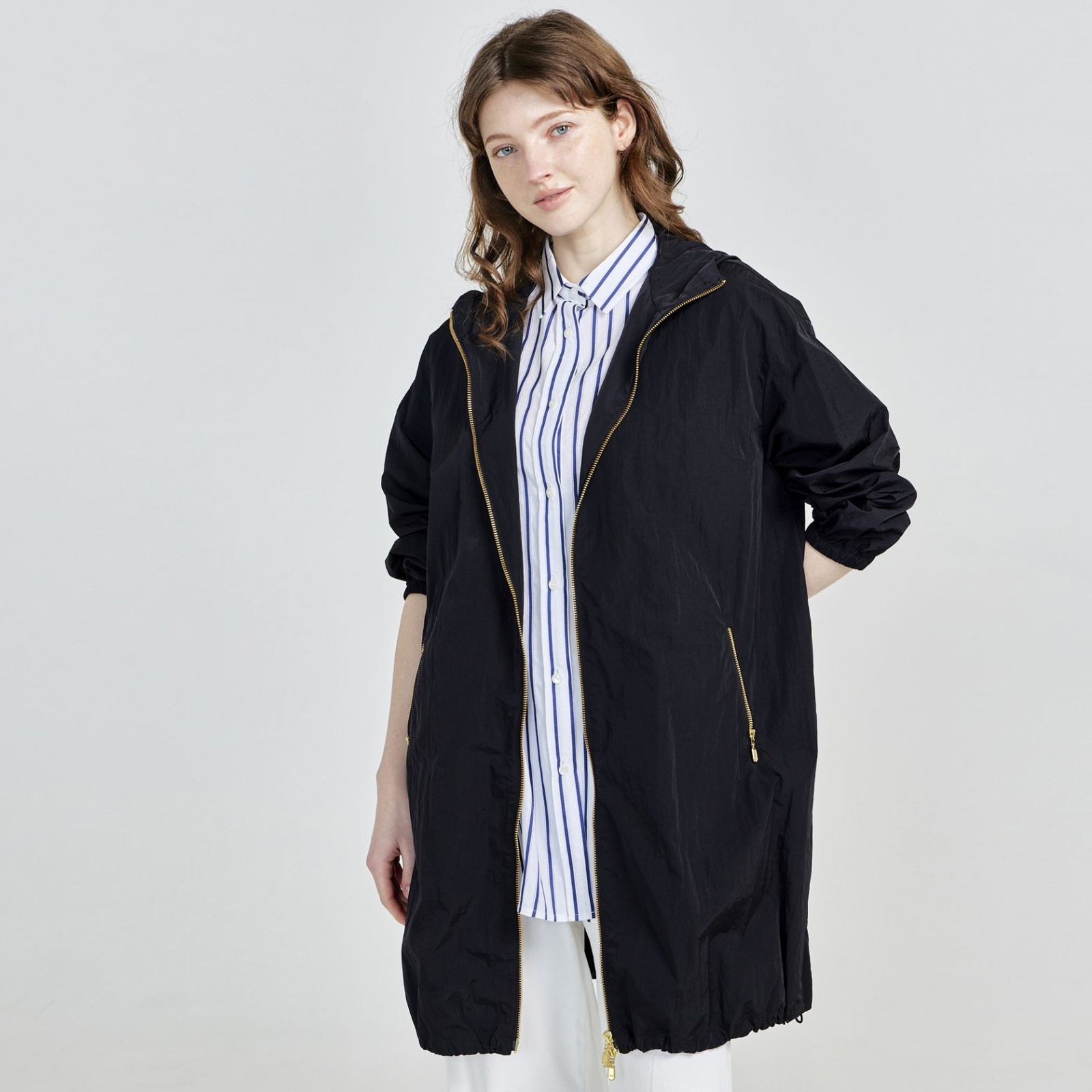 ゴールドZIPがポイントのライトコート ・繊維廃棄物から再生されたナイロンを使用 ・しなやかな肌触りと微光沢がスポーティーな印象で、ヴィンテージワッシャーによる表情変化が新鮮な薄手の平織タフタ