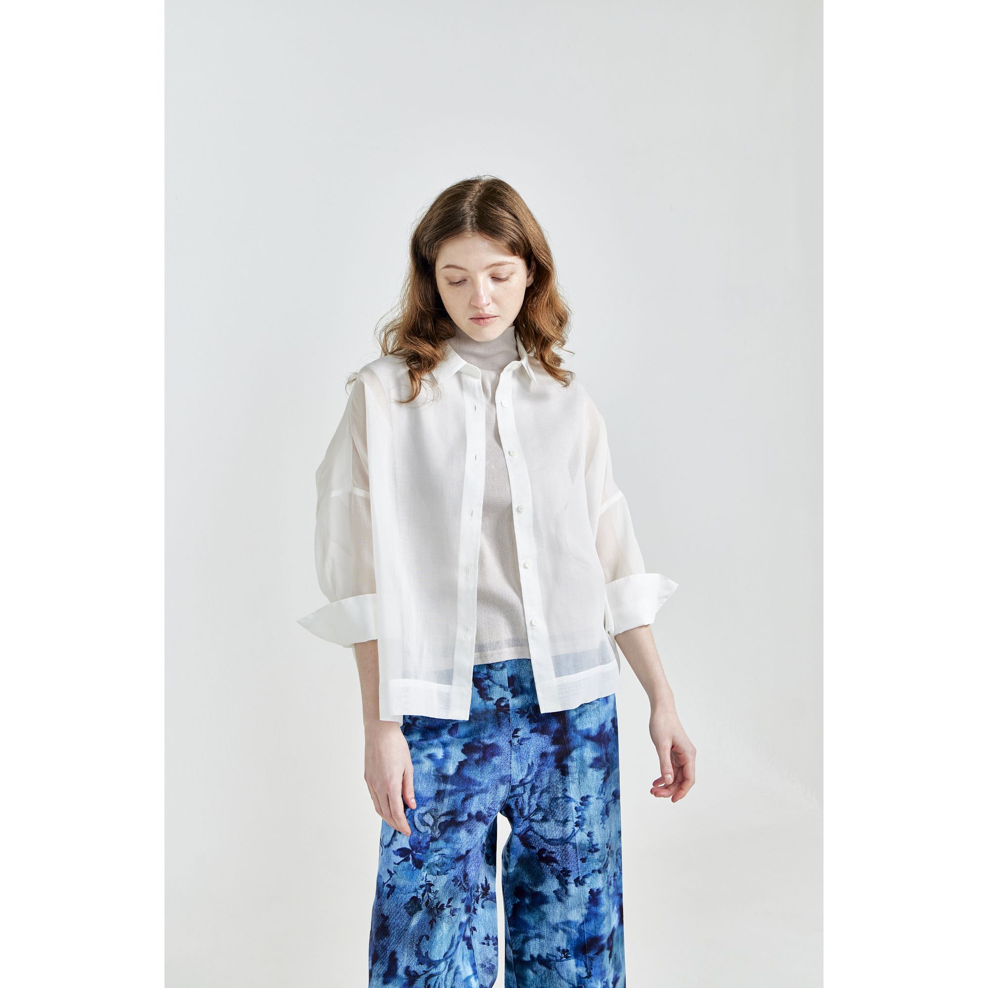 [PINETA]シャツ・ブラウス Bigシルエット衿付ブラウス ソフトオーガンジー/3月中旬配送