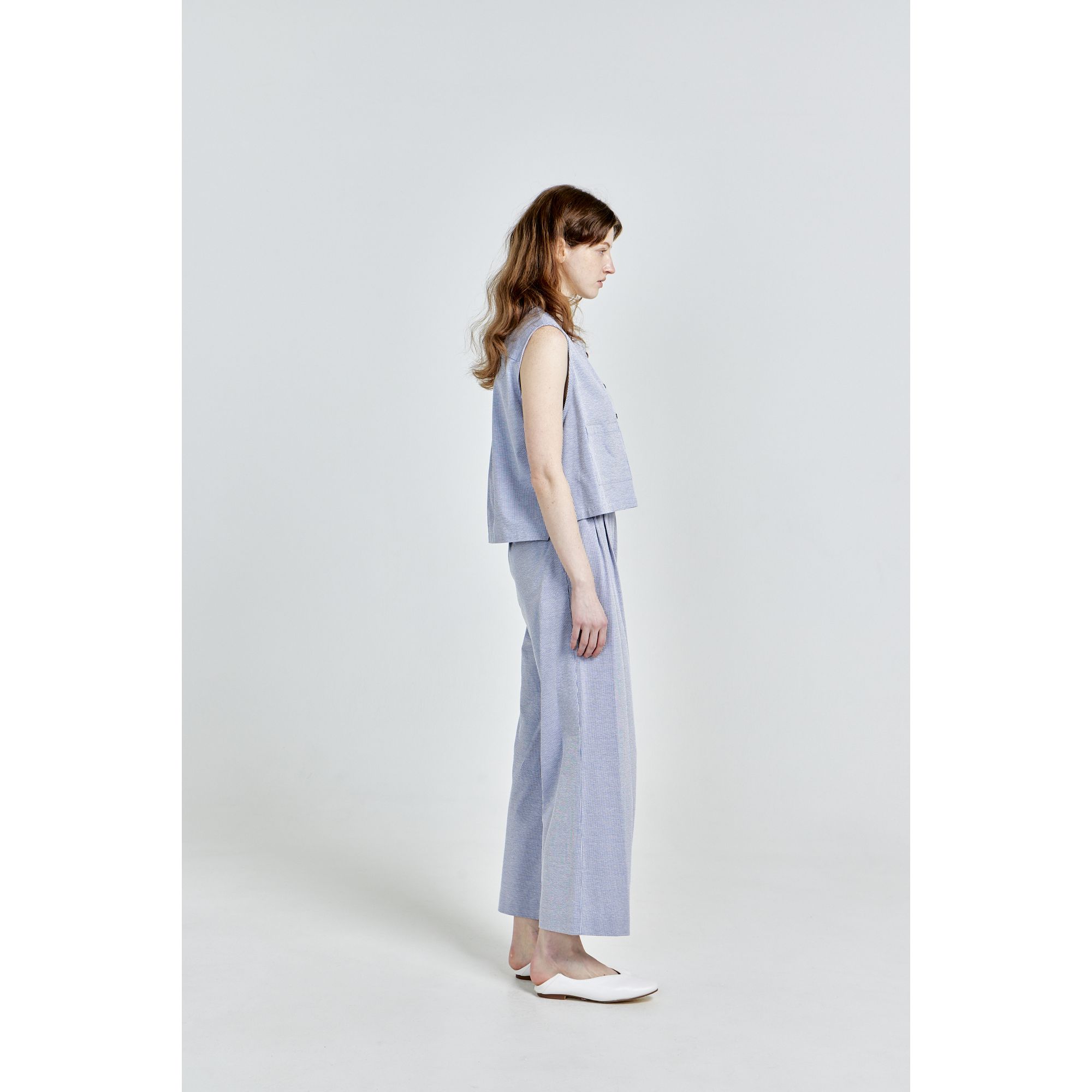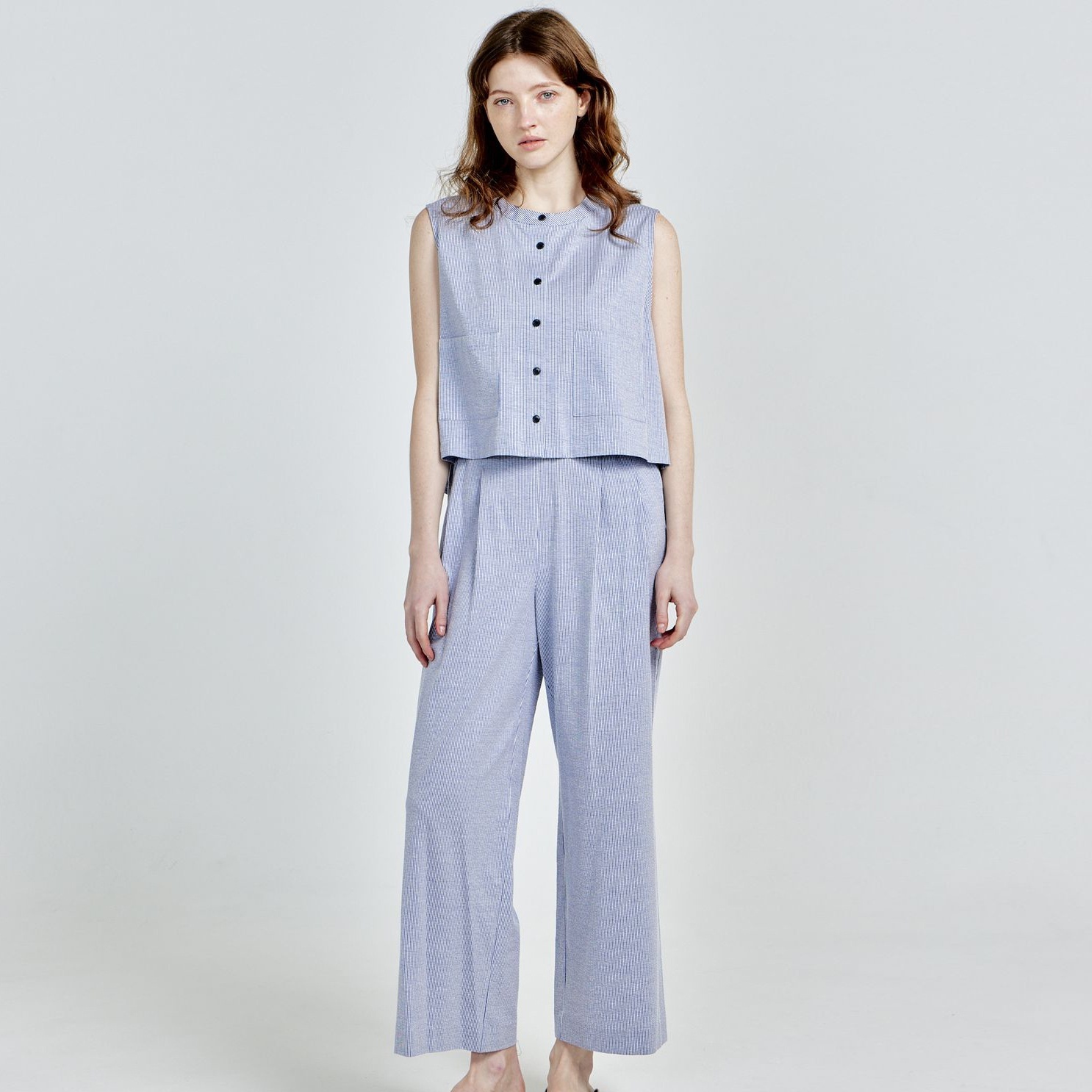 [PINETA]パンツ ツータックワイドパンツ コットン/リネン ストライプ/3月中旬配送