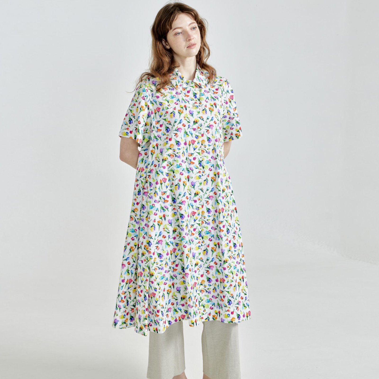 [PINETA]ワンピース 衿付前開きワンピース/3月中旬配送