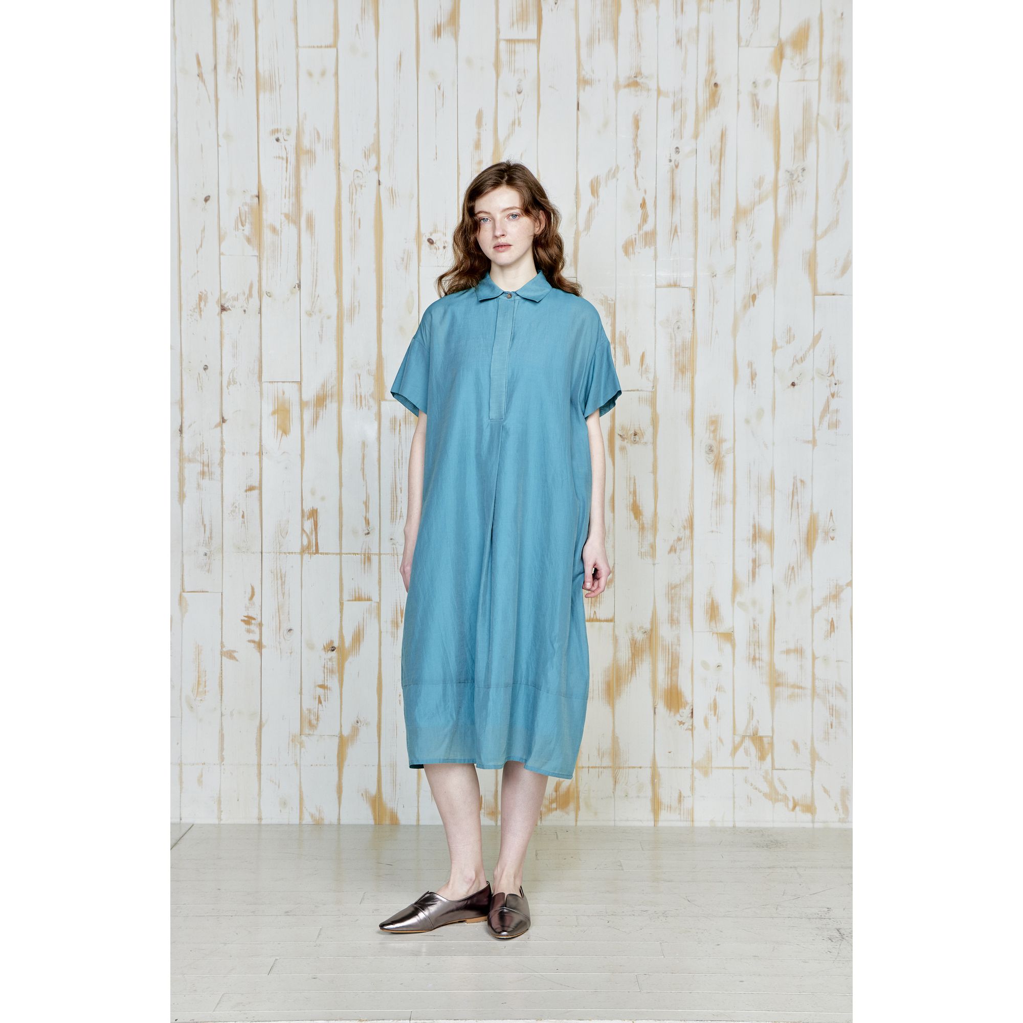 [PINETA]ワンピース 衿付き裾バルーン型 ワンピース/5月上旬配送