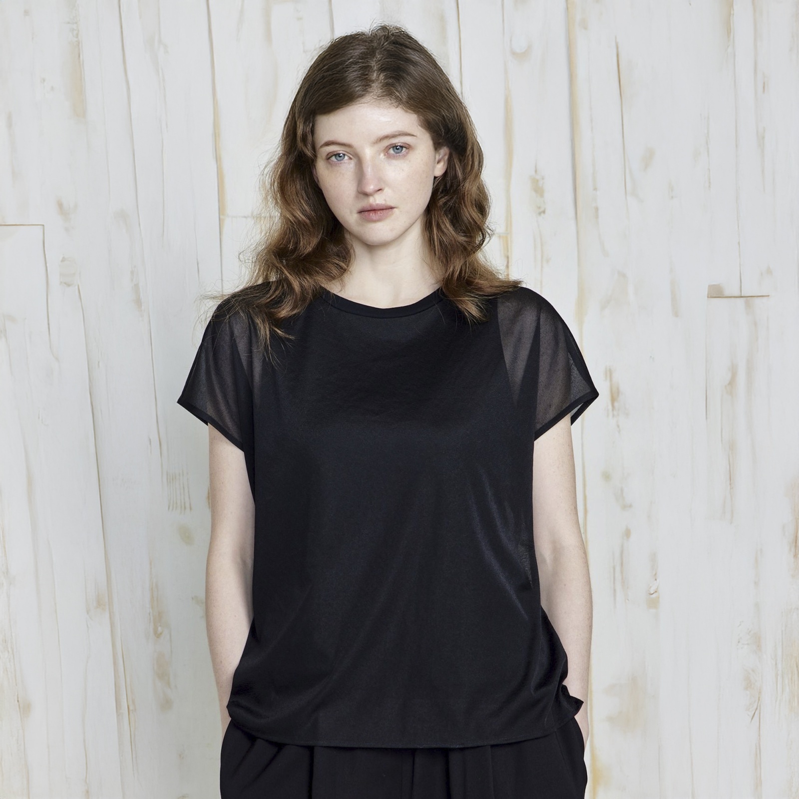 ・透け感のあるトリコット素材・優れたストレッチ性・毛羽を極限までそぎ落とし、洗濯を繰り返しても着心地が損なわない・72/2をハイゲージに編立てており透けにくい素材になっています